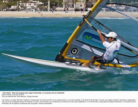 - Iván Pastor: “Esto me da ganas para seguir entrenando. La revancha será en el Mundial” Iván Pastor y su tabla “Movistar” finalizan el Campeonato de Europa de RS:X en la cuarta posición y con este resultado, el de Santa Pola afirmaba: “Ha sido una regata excelente. Buscaba la regularidad y creo que la he conseguido porque me descarto un octavo, así que estoy muy contento por la manera en la que estoy regateando. Lo he hecho bien y tengo ganas de seguir entrenando. La revancha será en el Mundial, allí me esperan condiciones que me gustan: vientos complicados”.
