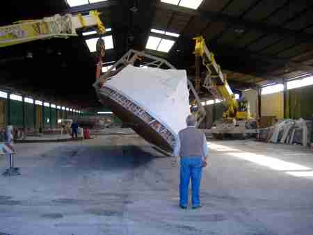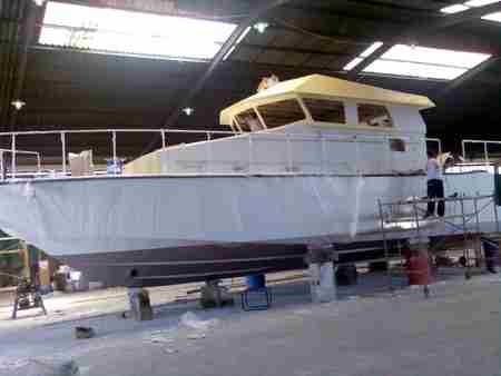La construcción: es un barco construido sandwich y poliéster, sin molde, y en los casos que se ha debido utilizar molde, se ha construido un molde desechable, los acabados interiores son en tapizado y poliéster, el mobiliario es en cerezo y la cubierta interior es en símil teca, la cubierta exterior es en acabado antideslizante tipo profesional.