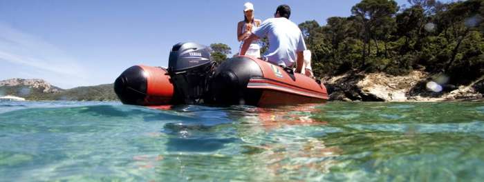 Con una auxiliar de quilla hinchable y un fueraborda de 5 cv