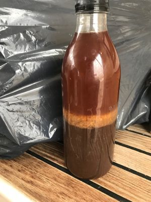 botellita con diesel nuevo, para meter diesel nuevo en el circuito
