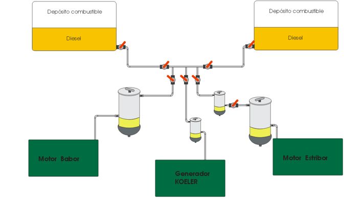 unos tanques a otros, haciendo pasar si queremos el diesel, por un