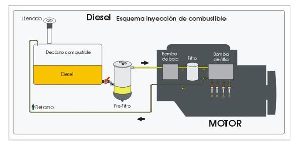 depósito llega al motor, hay que vaciar, y alimentar con diesel