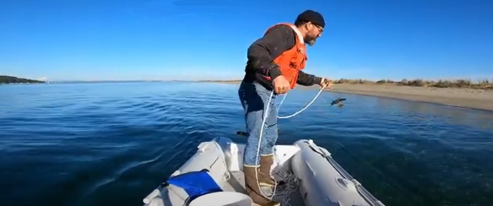 cabo para asegurar la neumática por la popa, pues lo que menos