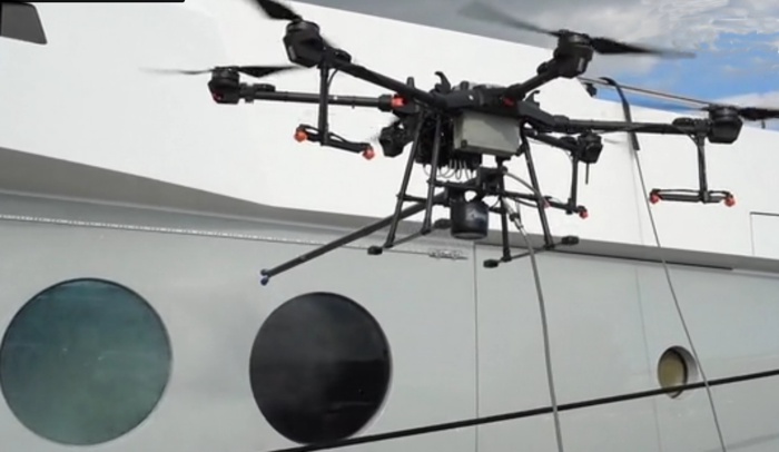 labores de limpieza de yates, para lo cual se usan potentes drones
