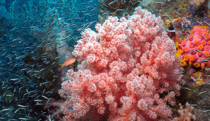 laberintos submarinos tapizados de corales blandos y esponjas de