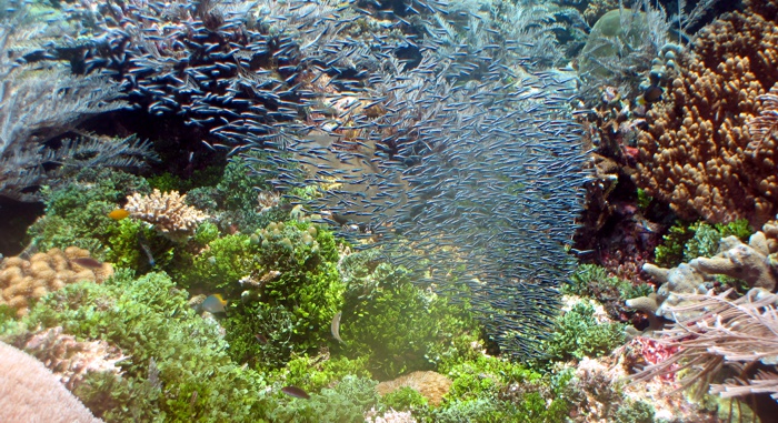 cardúmenes de todo tipo de peces, y una biodiversidad marina