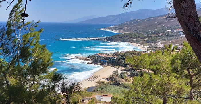 aparece Psili Ammos con una de las playas más famosas de todo Samos