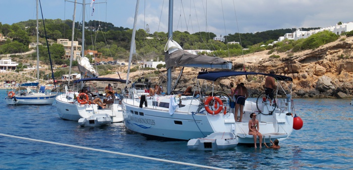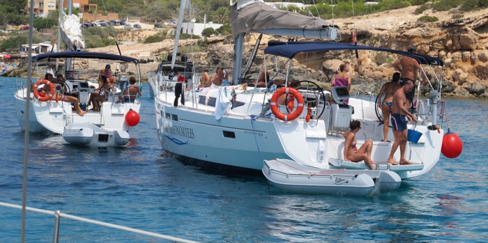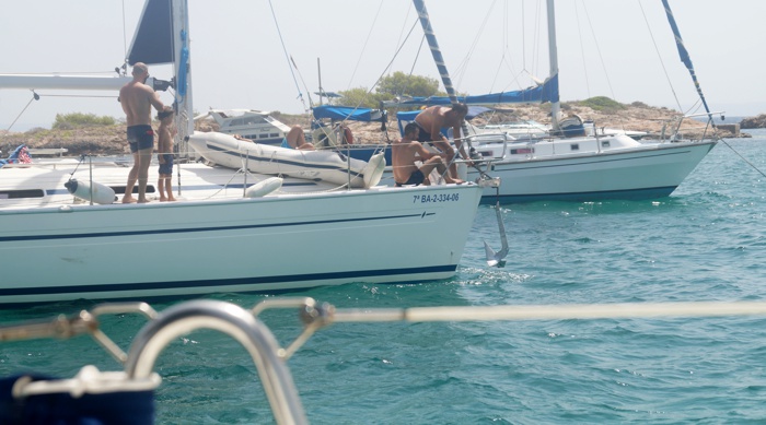 vamos a estar un rato en fondeo a pasar la tarde, con la mitad de
