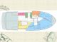 Gran bañera con cofres que sirven de bancos, plataforma de baño incorrecta y solarium en la cubierta de proa.