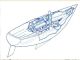 Tiene un camarote en proa semi aislado, una dinete convertible y una litera tipo conejera.La cocina es perfecta para este barco.