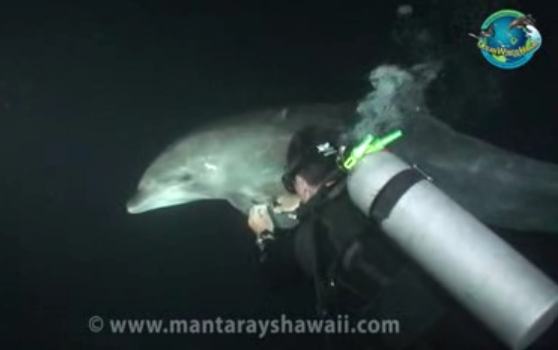 El hecho ocurrió cuando un grupo de aficionados al buceo se hallaban en una inmersión observando mantas en el océano pacífico de Hawai. El instructor de buceo se dio cuenta que el delfín nadaba con dificultad. El