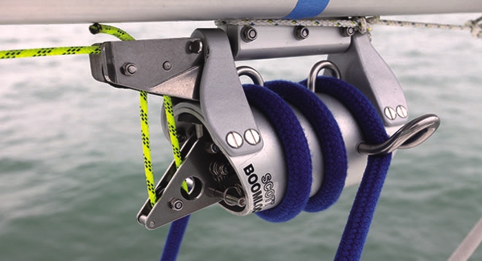 mecanismo de freno fijado en la botavara.