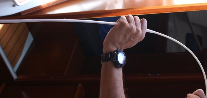 muchos, lo mejor es estirar la funda y cable sobre el pantalán y pasar