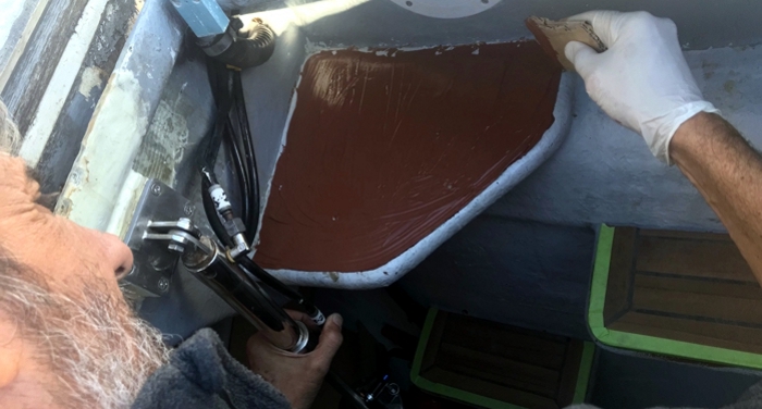 Aplicamos poliuretano extendido con una espátula y pegaremos la