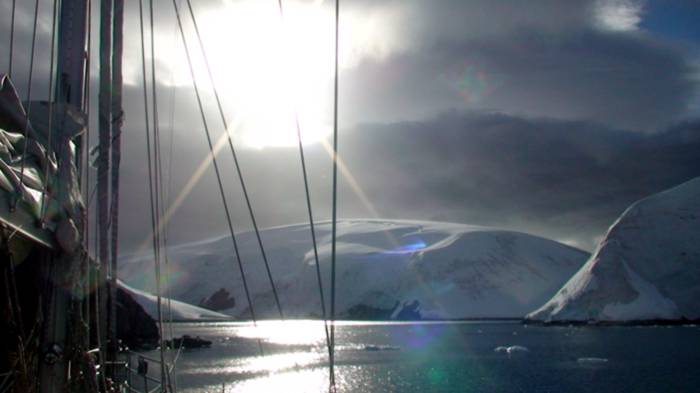 Nuestro velero fija su nuevo rumbo a través de las aguas polares por