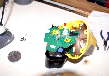 cuidado el circuito electrónico, descubrimos dos cables con poco