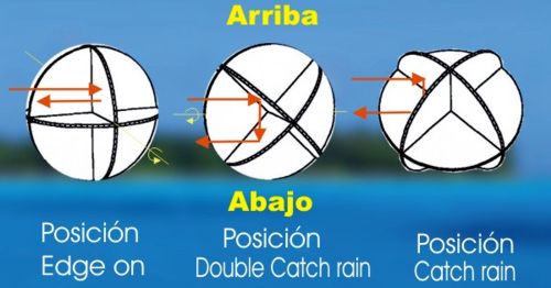 captación de agua (double catch rain), o en posición