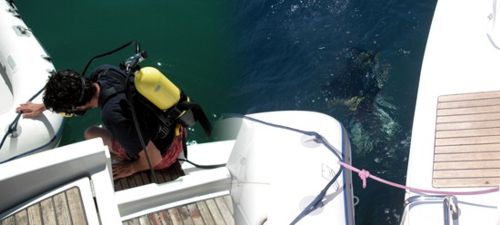 la cubierta por un cabo de seguridad. Con unas buenas aletas la