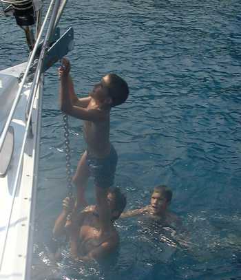 Fondeados no hay problema, ya que los chicos disfrutan nadando