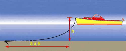 longitud total del fondeo de unas 7 veces la altura desde el fondo